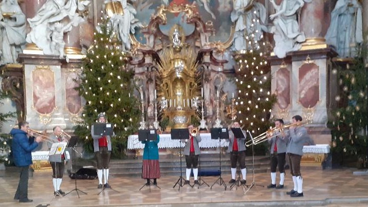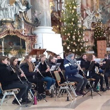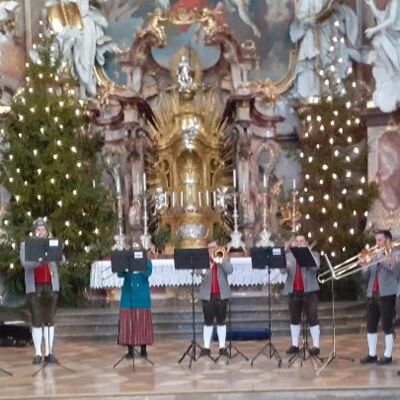 Erstmals seit 2017 hat die Blasmusikgesellschaft Ottobeuren wieder kurz vor Weihnachten eine Messe im Klinikum Ottobeuren musikalisch umrahmt. Diese wurde per Video in die Krankenzimmer übertragen und im Anschluss daran wurden noch in fünf Stationen des Krankenhauses Weihnachtslieder gespielt.
